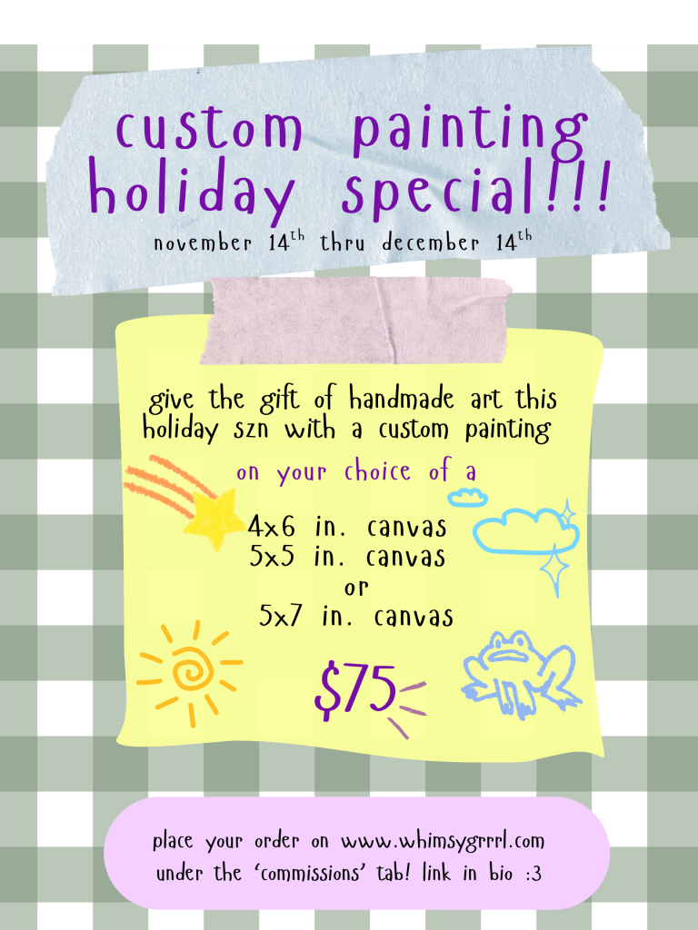 it’s been so fun creating these pieces this year! i’ve gotten to do a handful of pet portraits which i am super stoked about! as well as some classic whimsygrrrl things with kid core mixed media. my heart is exploding!!